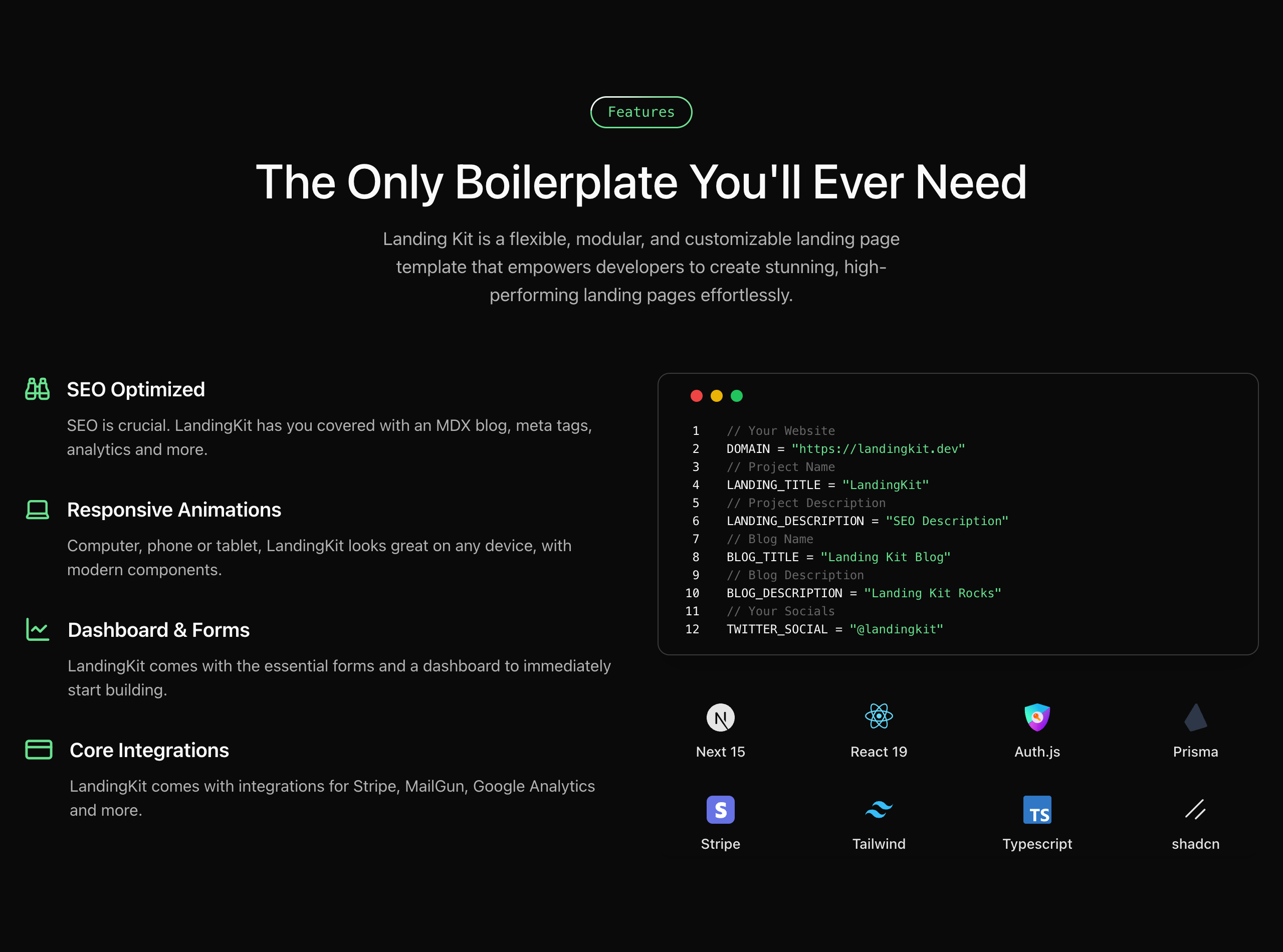LandingKit comes with everything you need, built-in Stripe, Mailgun, and authentication features ensure everything runs smoothly.